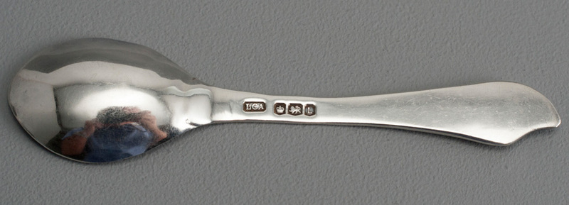Description: An interesting silver spoon, made by the Leeds College of Art in 1953, to commemorate the coronation of Queen Elizabeth II in 1953. The spoon is teaspoon size, has a curvilinear handle and is struck with a large coronation mark as key decoration on the front of the spoon, this was an optional hallmark. The spoon is clearly hand made, the bowl and drop a little wonky, so perhaps made by an apprentice. The hallmarks are clear, including makers mark LCA for Leeds College of Art. Leeds College of Art, which still exists today, had a good reputation for silver in the 1950's and early 1960's (Source Designer British Silver, Andrew & Styles, page 372). Silver by Leeds College of Arts is scarce, occasional pieces assayed at Sheffield with the LCA sponsors mark appear on the secondary market (we have seen a few examples on the internet, spoons, beakers and a gravy boat). In addition to being a rare Leeds College of Art piece of silver, the use of the large optional coronation hallmark as decoration is also unusual. During the time this spoon was made, "Alann Fisher, a very accomplished Sheffield trained silversmith was in overall charge of the silversmithing class" - Source as above. Fisher made a bowl and cover in 1949 which is in the Pearson collection (www.pearsonsilvercollection.com), this has the LCA sponsors mark. Don Porritt, one of the 50 leading silversmiths featured in the book "British Designer Silver", was a student of Leeds College of Art under Fisher at this time, he describes his time at LCA as "the best time of my life, Leeds was buzzing, I was not the same person at the end of the course"-"British Designer Silver" page 374. Porritt went on to lecture at LCA UNTIL 1992, he also won 5 awards. His distinctive style is curvilinear, so we postulated that "it is not impossible to imagine that Don Porritt made this spoon". We have now received correspondence from Don confirming he did not make this spoon, it could have been made by any of the staff or students at LCA at the time.