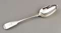 A Canadian silver tablespoon in the Fiddle pattern, made by Salomon Marion in Montreal Canada, who has been described as "one of the best silversmiths of his time". The spoon is a very pleasing quality, and is in excellent condition, it is a pleasure to use. The spoon is engraved with a very clear family crest, a bird (stork or heron?) holding an anchor, this is engraved on the front of the spoon. The spoon is clearly hallmarked with makers mark S Marion in script, in an unusually shaped punch, slightly wider ofver the S and M - this is very clear, and is a better example that the one depicted in the book "Candian Silversmiths 1700-1900 by John Langdon, page 100. This is accompanied by 2 pseudo hallmarks, a skinny lion passant and Georgian duty mark, both are very clear. Salomon Marion (1782-1830) was apprenticed to leading silversmith Pierre Huguet dit Latour, and was freed in 1803. He produced church silver for his former master, and trade silver for a variety of merchants, before establishing his own busin...