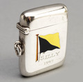 An interesting antique silver and enamel vesta case, with a black and yellow enamel maritime flag, engraved SALLY 1907, we assume Sally was a yacht. The back is engraved "Presented by Dr. Lauder to W.H.J. Hirst", the engaving is well done and still very clearly legible, with no wear. The vesta is the traditional rectangular shape, with striker on the base, and has a suspension ring for attachment to a fob chain. The interior still has some gilding visible, and the hinged lid works perfectly. The vesta is clearly hallmarked for Robert Chandler, Birmingham 1906, the lid is also clearly hallmarked. Robert Chandler (1902-1924) appears to have specialised in silver enamel vesta cases.