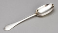 A rare Cape silver dessert spoon in the Kings pattern, made by Lawrence Twentyman. The spoon is excellent quality, as is usual for Cape silver Kings pattern, and has a very pleasing weight. The Kings pattern is double struck (on both sides), and this spoon has not been engraved. The spoon has 5 clear hallmarks, makers mark LT and 4 pseudo hallmarks, all individually struck. They include pseudo lion passant, Georgian duty mark, date letter a and crowned leopards head town mark, this is mark 135 in the book Cape Silver by Stephan Welz. Cape silver Kings pattern was only made by 2 silversmiths in the Cape, Twentyman and Fredrik Waldek, who took over Twentymans' workshops when he left the Cape for India.