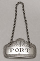 A Bateman silver Crescent shaped Port wine label, with armorial above engraved "PORT". The label has a double reeded edge, and 2 eyelets for connection to original chain. The label is quite small and dainty, and an elegant shape. The hallmarks are clear (duty mark, sterling lion and date letter t for 1794) but the makers mark is only partially struck on the edge of the label (very clear PB, and only tip of AB underneath visible). The Bateman family of silversmiths were the leading exponents of the crescent shaped wine label (Wine Labels 1730-2003, pg 62).